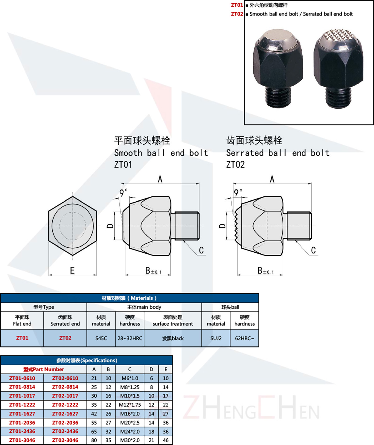กรับสกรู โบลท์ปลายบอลเรียบหัวบอล ZT59